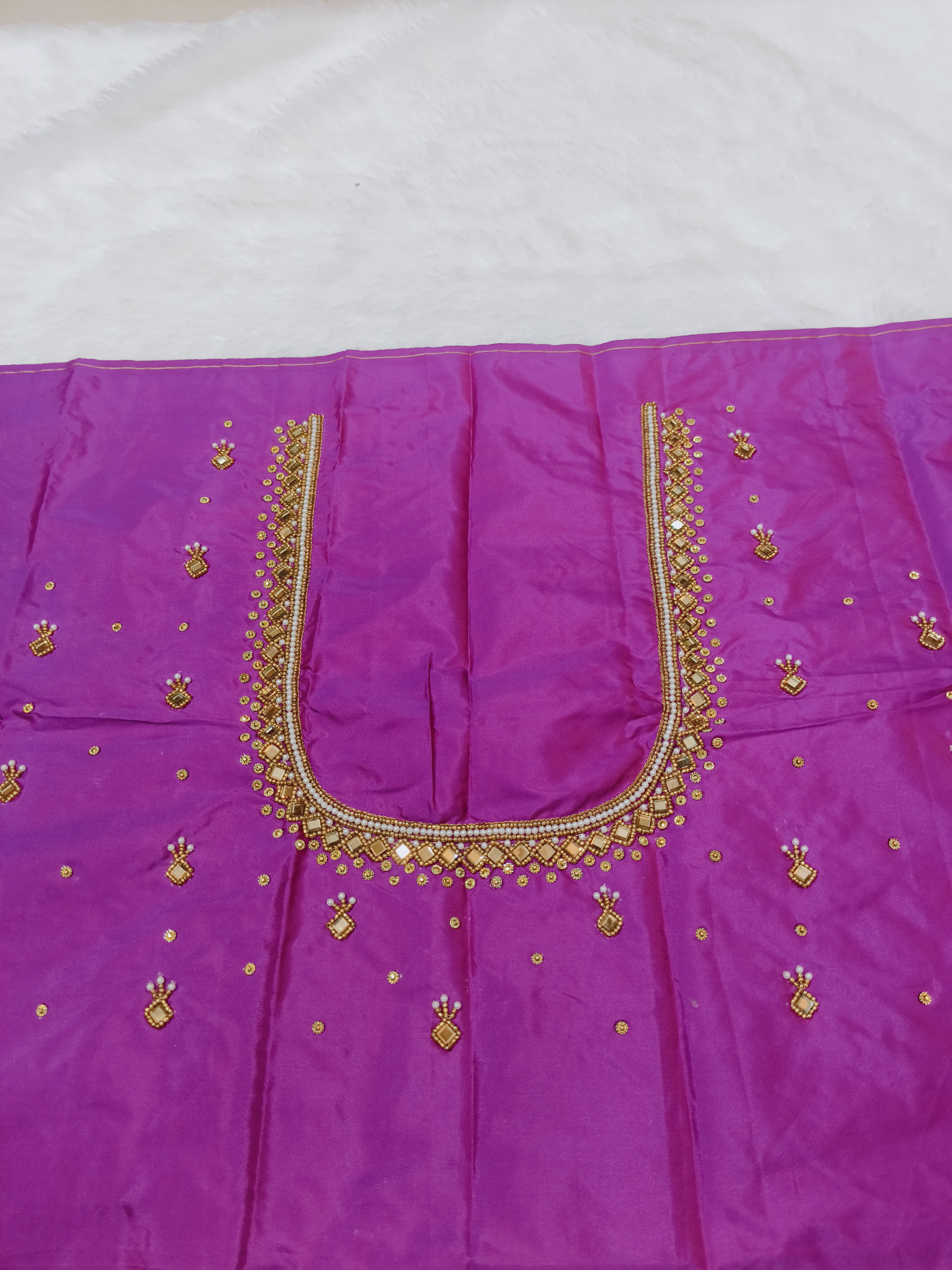 Elegant purple blouse piece with minimal yet classy maggam embroidery.